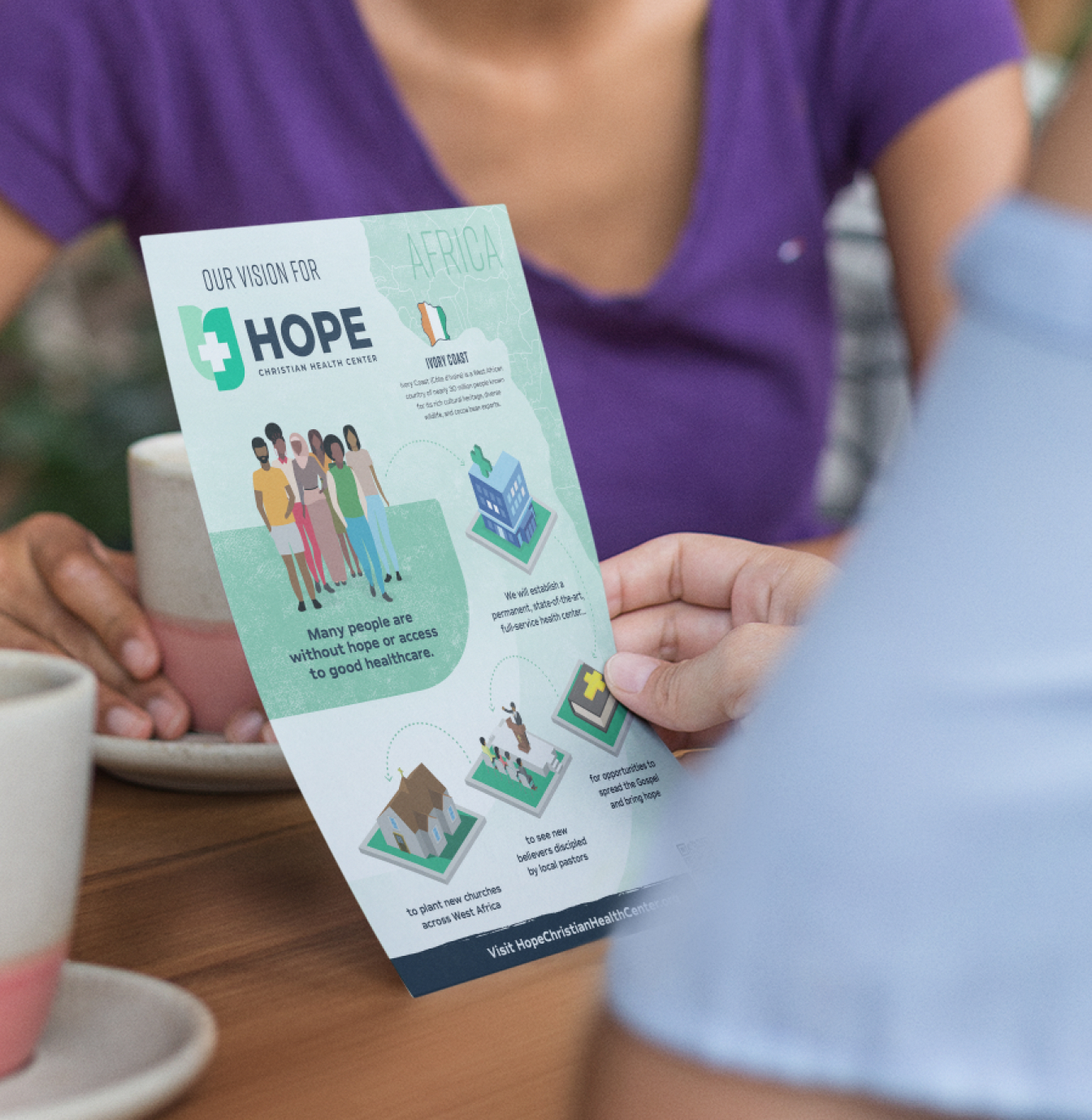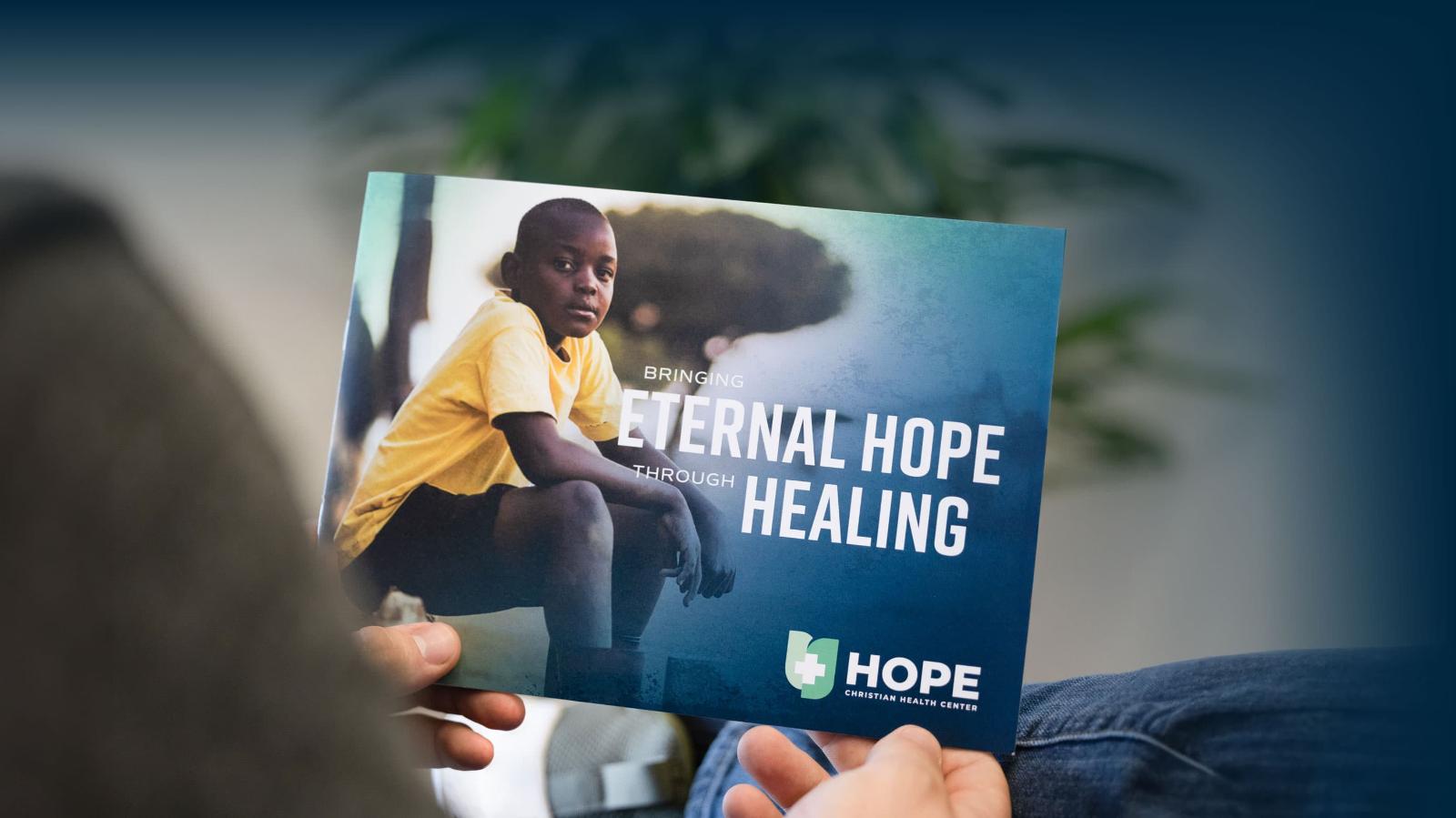To carry their new messaging forward, they needed eye-catching collateral that they could hand out to prospective donors at events. YCP wove together compelling photography with clear message to give each piece an engaging, unified feel that looked and sounded like Hope's brand. Bold, simple action words called the audience to join them in the cause that the founders had given their lives to.